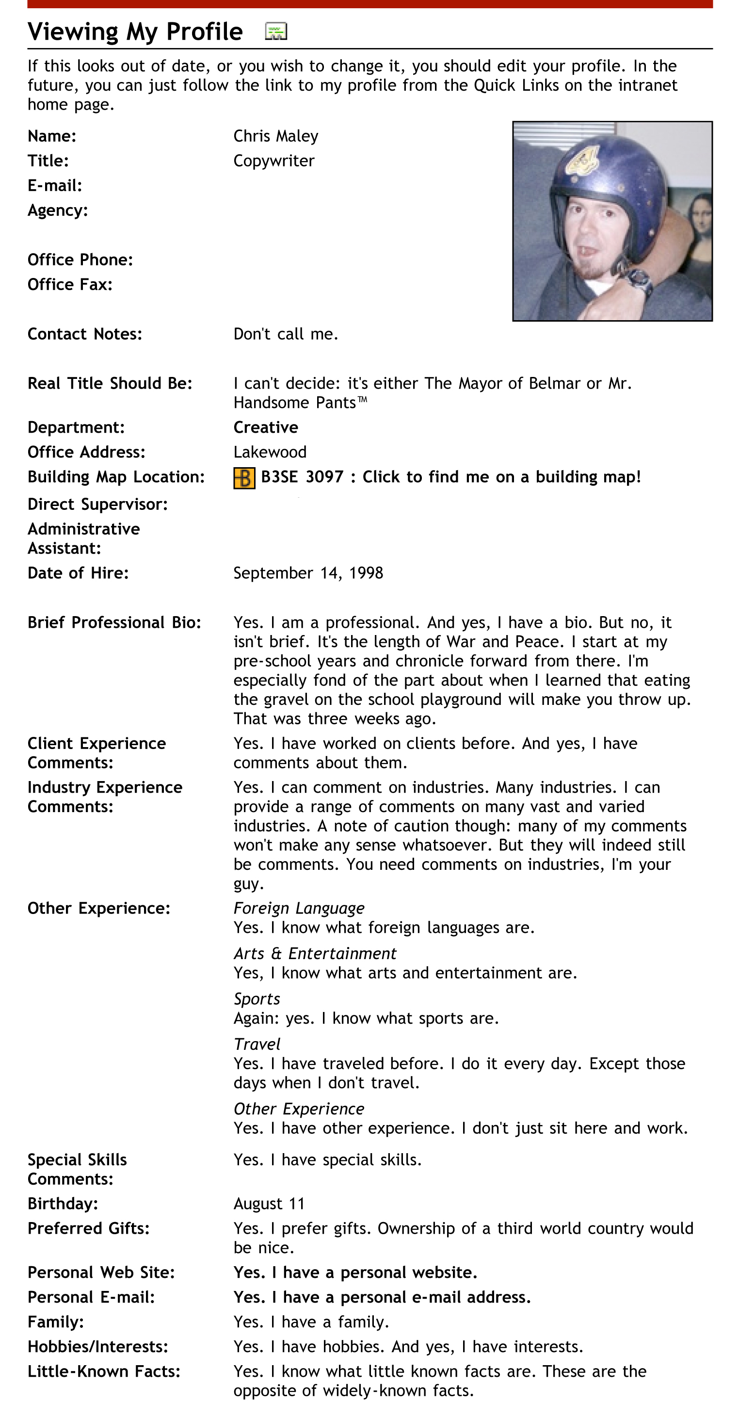 Ahhh…my old employee bio page.