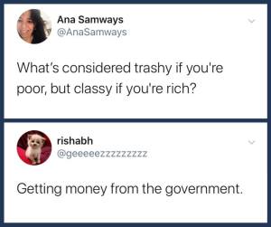 Hypothesize with me: the red-hatted aren’t guided by a hatred for socialism but a love for brocialism. They don’t have an issue with government handouts. Their problems lie more in the area of who gets the handouts.