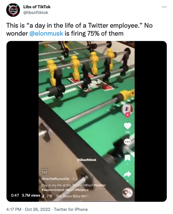 Last week, Elon did buy Twitter. And…wait for it…he started firing people right away. Just like the happenings at CNN, this news brought out battle-bragging.