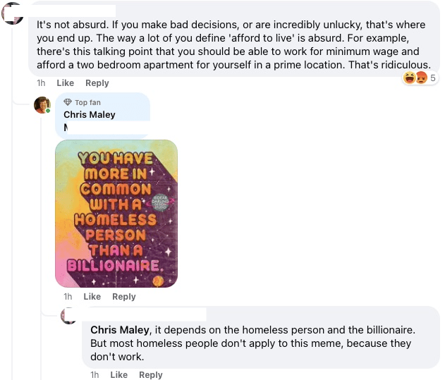 If you want to get a feel for the Petting Zoo Bourgeoisie value system, post this meme in the response section of any post about income inequality or systemic racism. Chances are, within a few postings you will trigger people who use the word “triggered” as a slur. The scabs who cross picket lines for free hate thinking that they might have more in common with a homeless person than a billionaire.